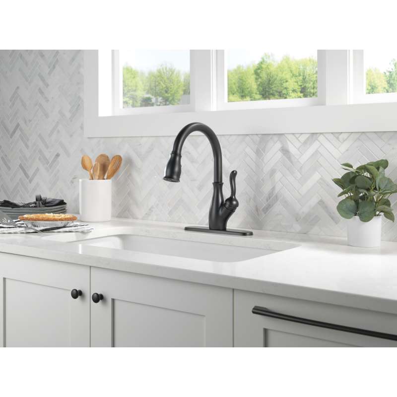 9178-BL-DST Leland Single Handle Pull Down Kitchen Faucet with ShieldSpray Technology, Matte Black
