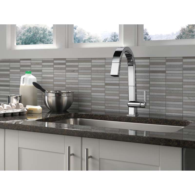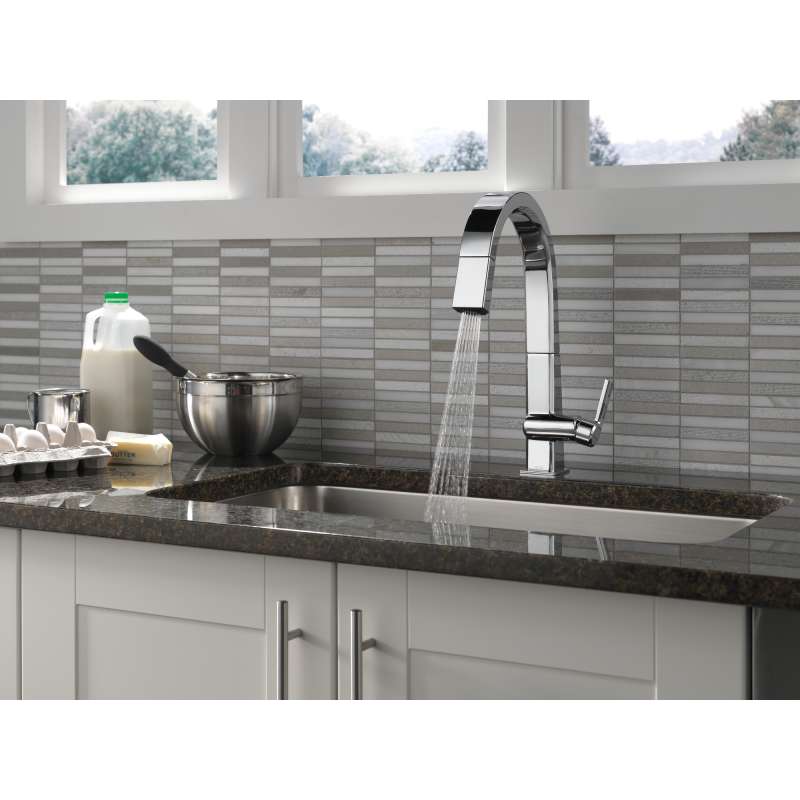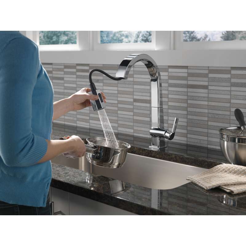 The confident slant of the Pivotal Collection makes it a striking addition to your kitchen's contemporary geometry for a look that makes a statement. Delta MagnaTite Docking uses a powerful integrated magnet to pull your faucet spray wand precisely into place and hold it there so it stays docked when not in use. Delta faucets with DIAMOND Seal Technology perform like new for life with a patented design which reduces leak points, is less hassle to install and lasts twice as long as the industry standard. You can install with confidence, knowing that Delta faucets are backed by our Lifetime Limited Warranty. Industry standard is based on ASME A112.18.1 of 500,000 cycles.