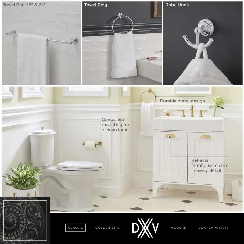 The Oak Hill Accessories from DXV bring the charm and lasting appeal of the traditional farmhouse aesthetic into today’s home. Designed to preserve the authenticity and spirit of the period, each piece in this collection reflects the simple, stoic character that balances utility and beauty in statement-making style. Part of the Oak Hill Collection, a complete, curated bathroom suite for the well-appointed home. Available in four beautiful finishes.