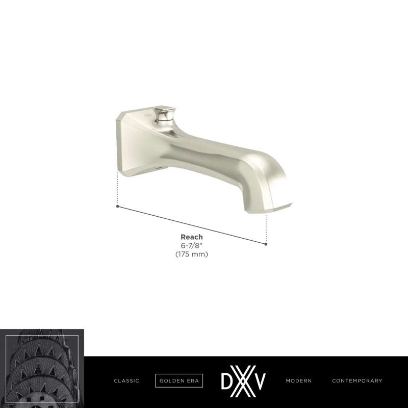 The Belshire Wall Tub Spout from DXV captures the opulence and glamour of the Art Deco period, reimagined for today. Rich in character and substance, this tub spout reflects the design aesthetic of the Belshire Collection and is defined by precise faceted details. Available in four beautiful finishes.