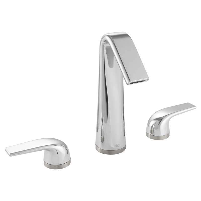 Sleek, modern, and deserving of the most luxurious bathroom setting, the DXV® Modulus High-Spout Widespread Bathroom Faucet complements the elegance of the entire DXV® Modulus collection. The tall, gently curved spout and lever handles are accented by contrast rings at the base, adding a simple yet sublime touch to this exquisite design.