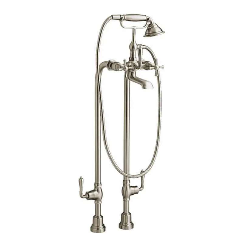 Transitional Floor Mount Bathtub Filler with Hand Shower and Cross Handles, D3510296C.144, D3510296C.144