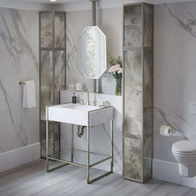 The Belshire Cross Faucet Handles from DXV complement the Belshire Faucet Collection, reflecting the same meticulous attention to every detail. Rich in character and substance, these distinctive handles are defined by precise faceted edges, reminiscent of the Art Deco period. Make a distinctly personal statement by pairing these beautiful handles with a favorite Belshire Faucet. Available in four beautiful finishes. Faucets sold separately.