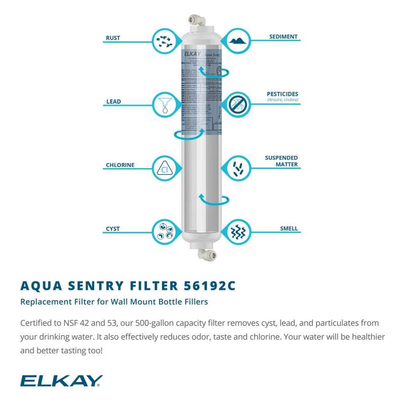 • The 500-gallon filter is tested and certified to NSF/ANSI 42 and 53 for the reduction of lead, cysts, Class I particulates, and chlorine taste and odor