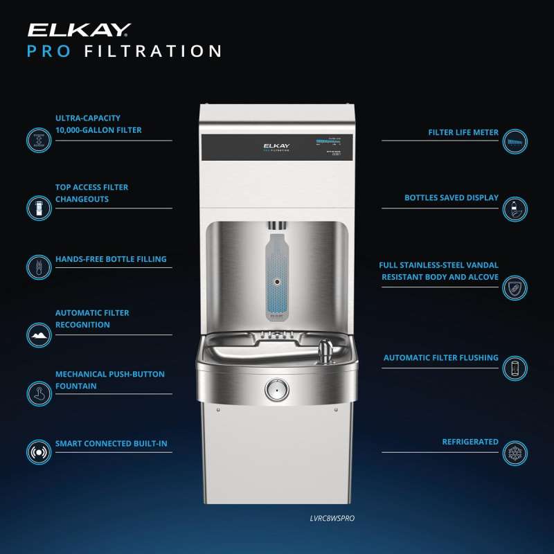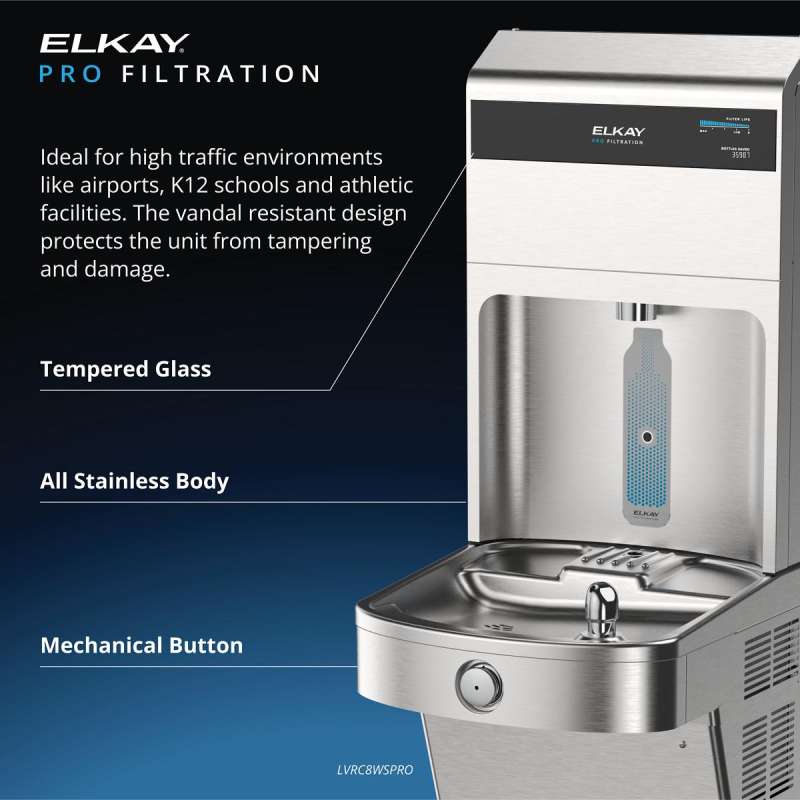 Elkay Pro Filtration Vandal-Resistant Connected Bottle Filling Station&Sgl Ada Cooler Refrig Ultra-Capacity Lead Rd Ss, LVRC8WSPRO