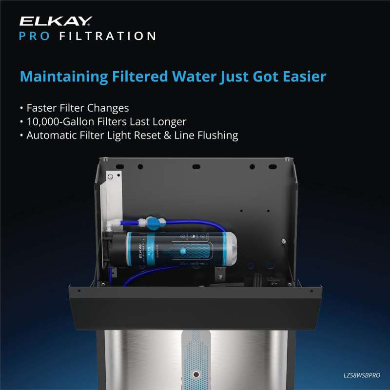 • Ultra-Capacity Filter Included: Elkay Pro Filtration 10,000-gallon filter is tested and certified to NSF/ANSI 42, 53 and 401 to reduce lead, microplastics and more; ideal for high-traffic areas
