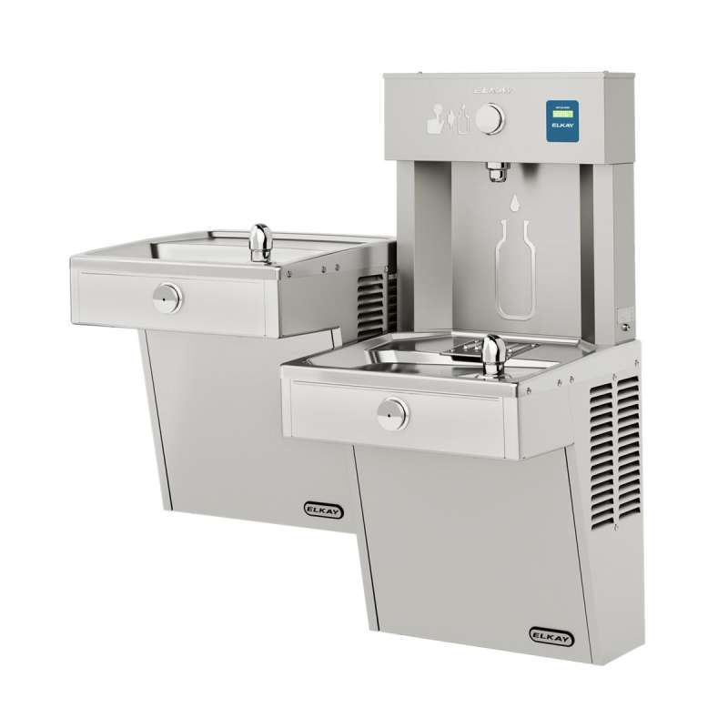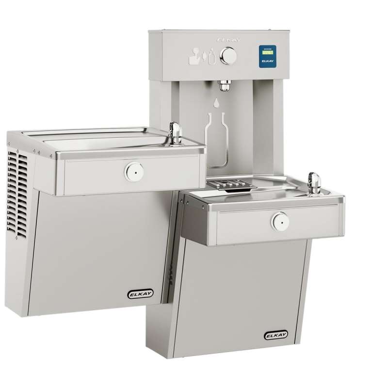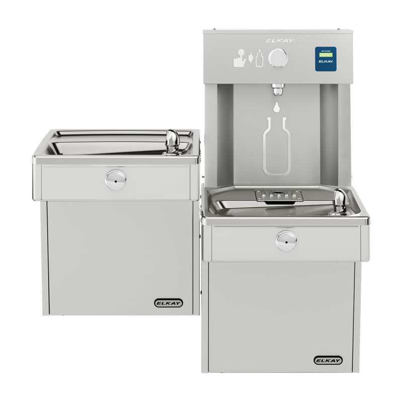The Elkay EZH2O Bottle Filling Station delivers a clean quick water bottle fill and enhances sustainability by minimizing our dependency on disposable plastic bottles. Vandal-resistant cooler and bottle filling station in a consolidated space saving ADA compliant design. Pushbutton activation with automatic 20-second shut-off timer on bottle filler.
