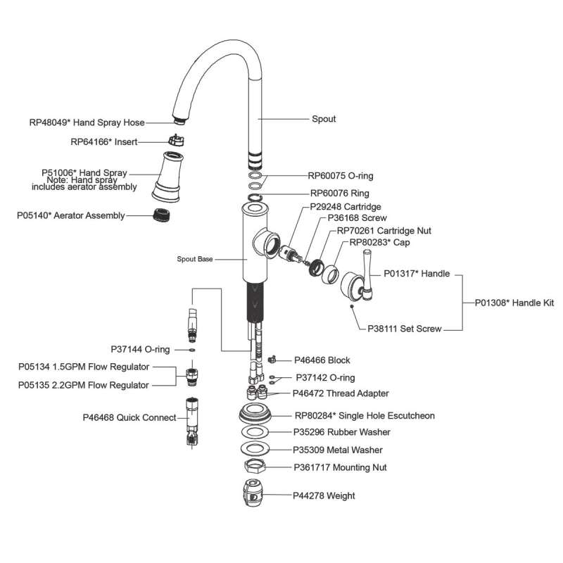 | Features Faucets | Low Flow;Solid Brass Waterway Construction |