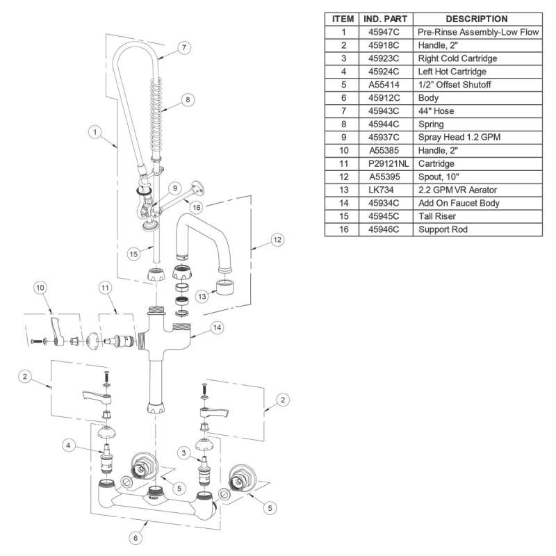| Features Faucets | Low Flow;Solid Brass Construction;Spout Swing Restriction Pin |