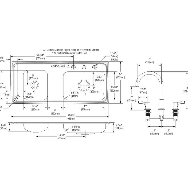 - KIT INCLUDES: DRKAD371745L sink, LKD2439C faucet, LK1141A bubbler, LK35 strainer, LK8 drain fitting, EF3000VRBMC filtration kit