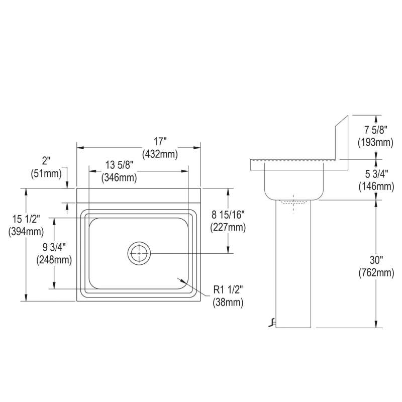 - Type 304 stainless steel basin