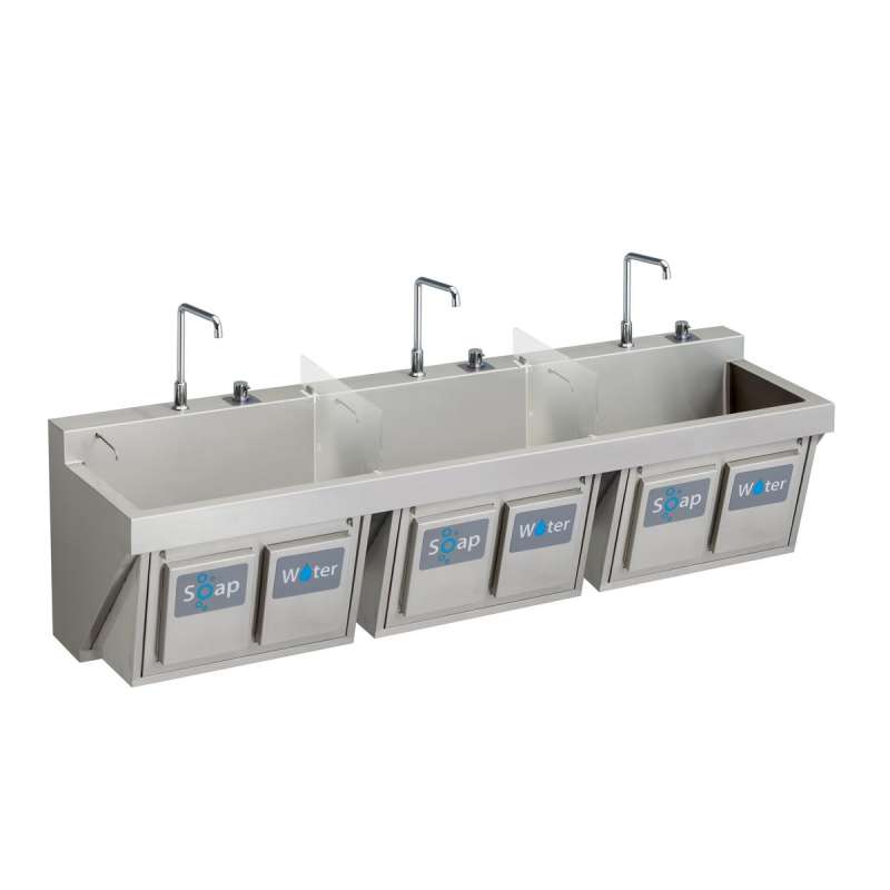 - Knee-operated water and soap push panels