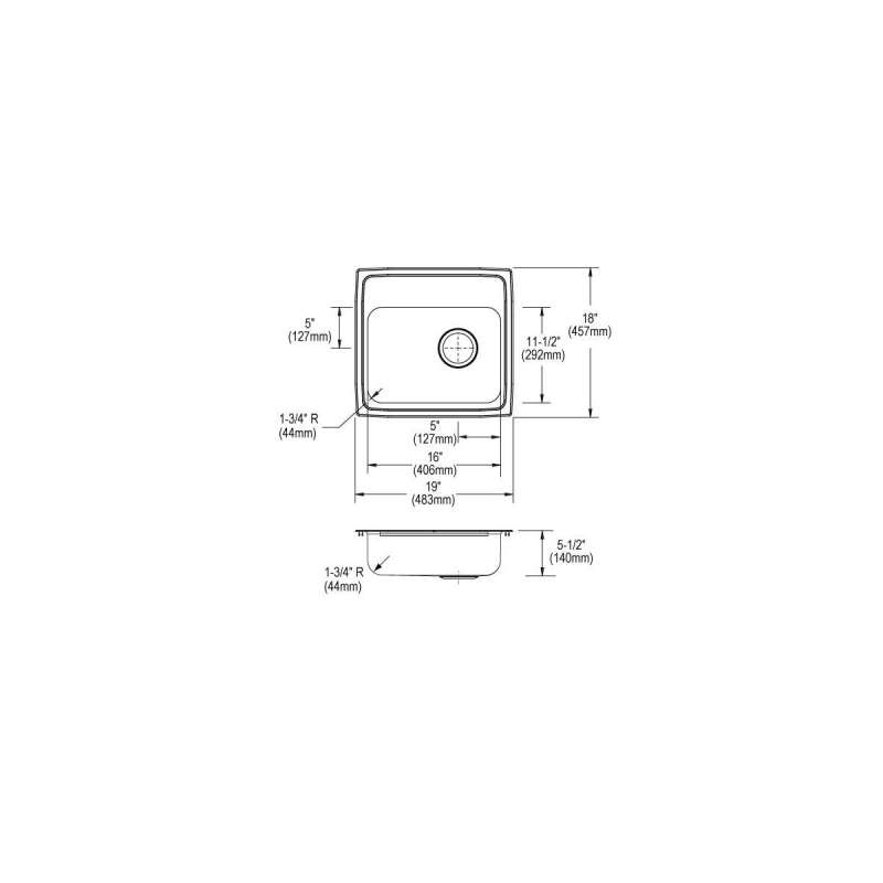 | Countertop Cutout Dimensions | 18-3/8" x 17-3/8" (467mm x 441mm) with 1-1/2" (38mm) corner radius |