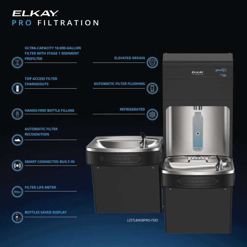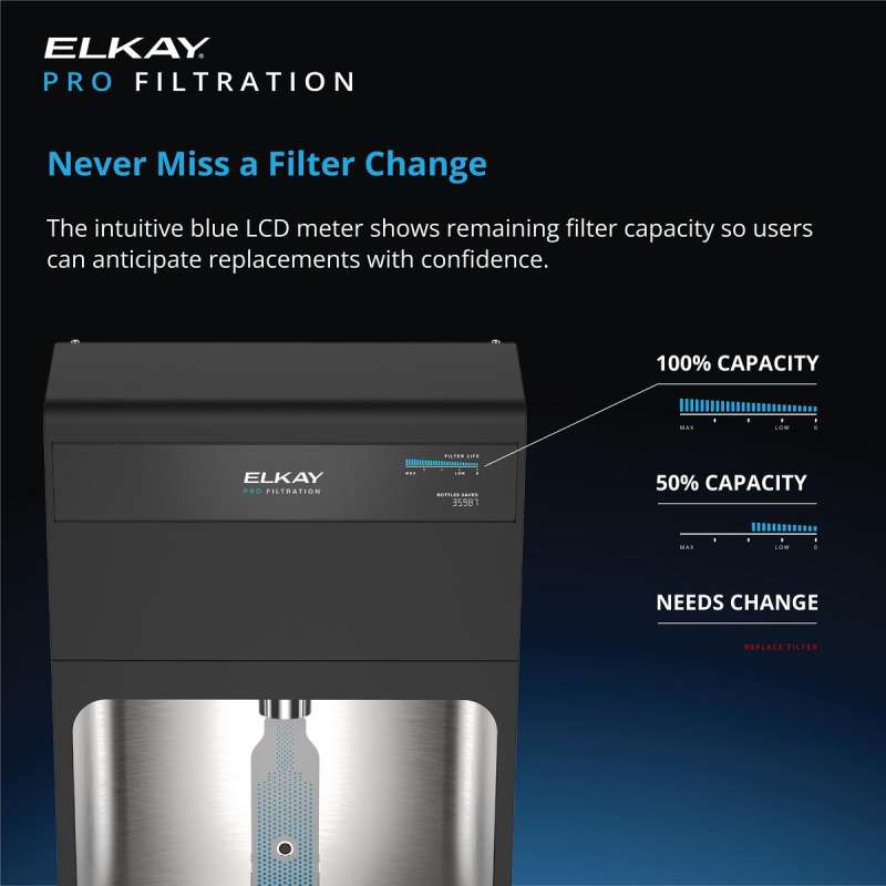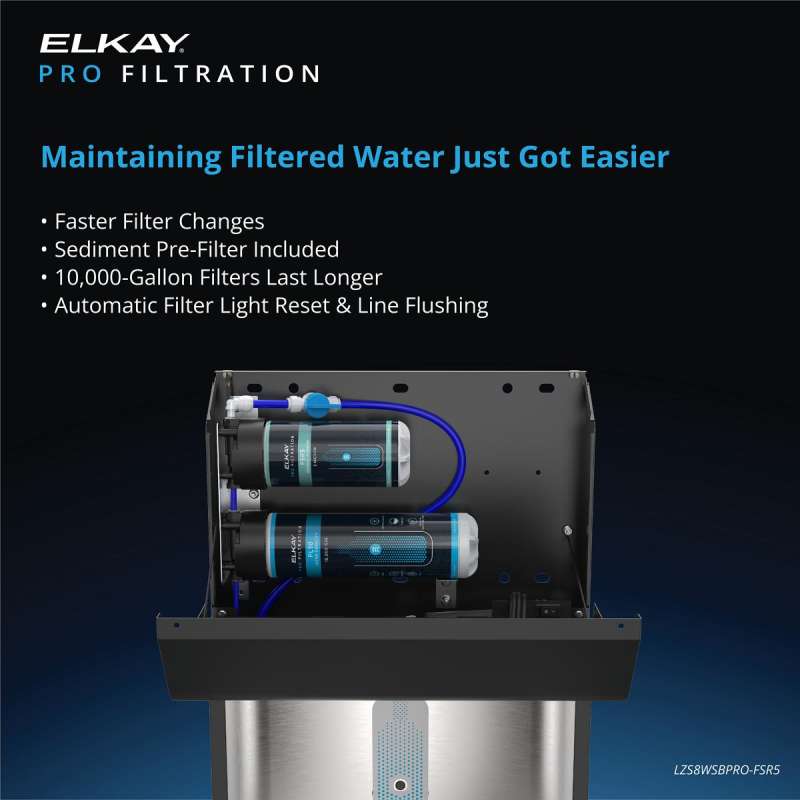 - Ultra-Capacity Filter Included: Elkay Pro Filtration 10,000-gallon filter is tested and certified to NSF/ANSI 42, 53 and 401 to reduce lead, microplastics and more; ideal for high-traffic areas
