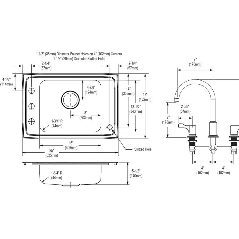 - KIT INCLUDES: DRKAD251755 sink, LKD2439C faucet, LK1141A bubbler, LK35 strainer, EF3000VRBMC filtration kit