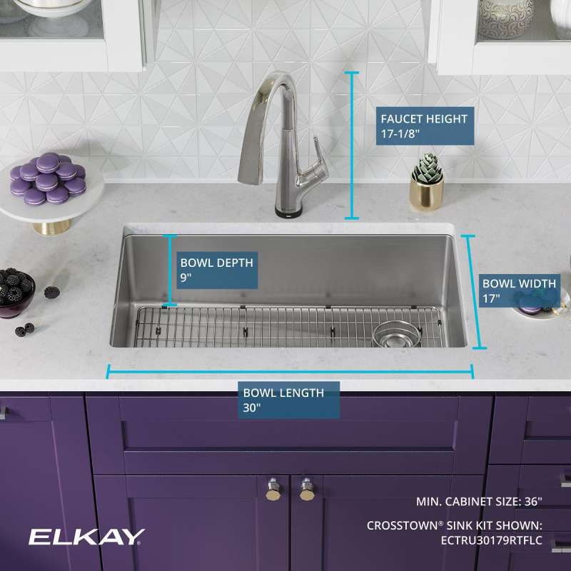 - KIT INCLUDES: ECTRU30179RT sink, LKAV7051FCR faucet with filter included, CTXBG2815 bottom grid, LKDD deep strainer drain; conveniently packaged together to save you time