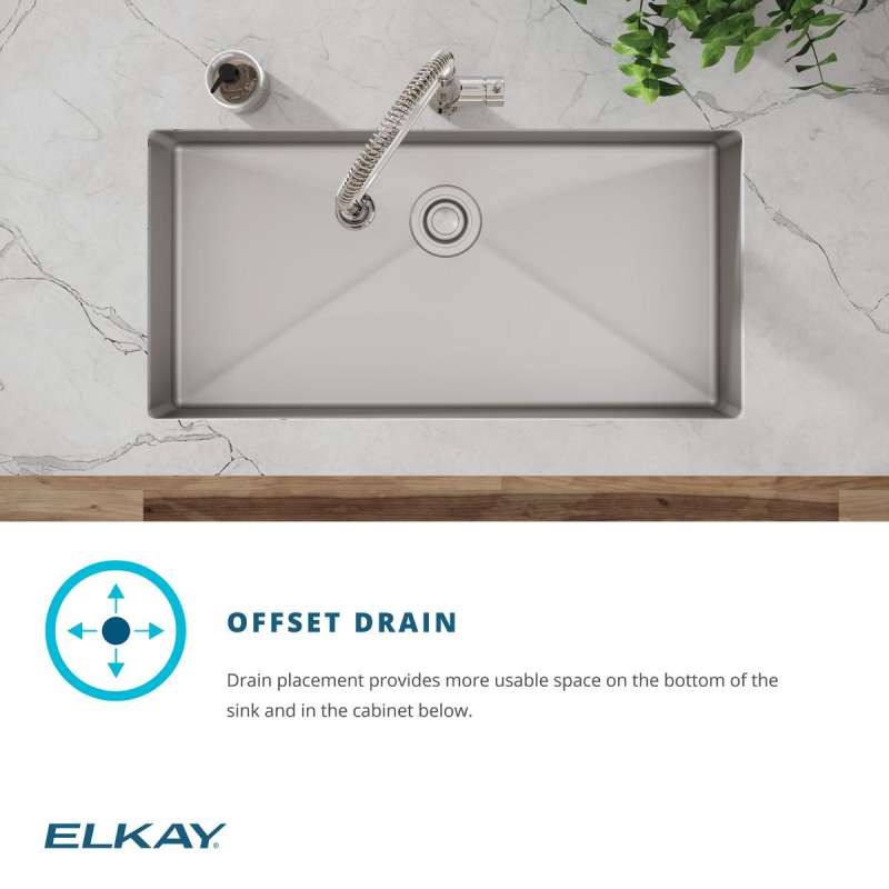 - OFFSET DRAIN: Drain placement provides more usable space on the bottom of the sink and in the cabinet below