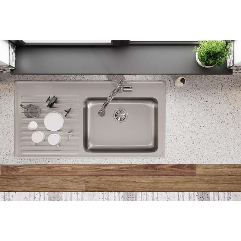 - BUILT-IN DRAINBOARD: Keep your countertop clean with a drainboard that channels water into the sink; use to hold hot pots, meal prep and dry dishes
