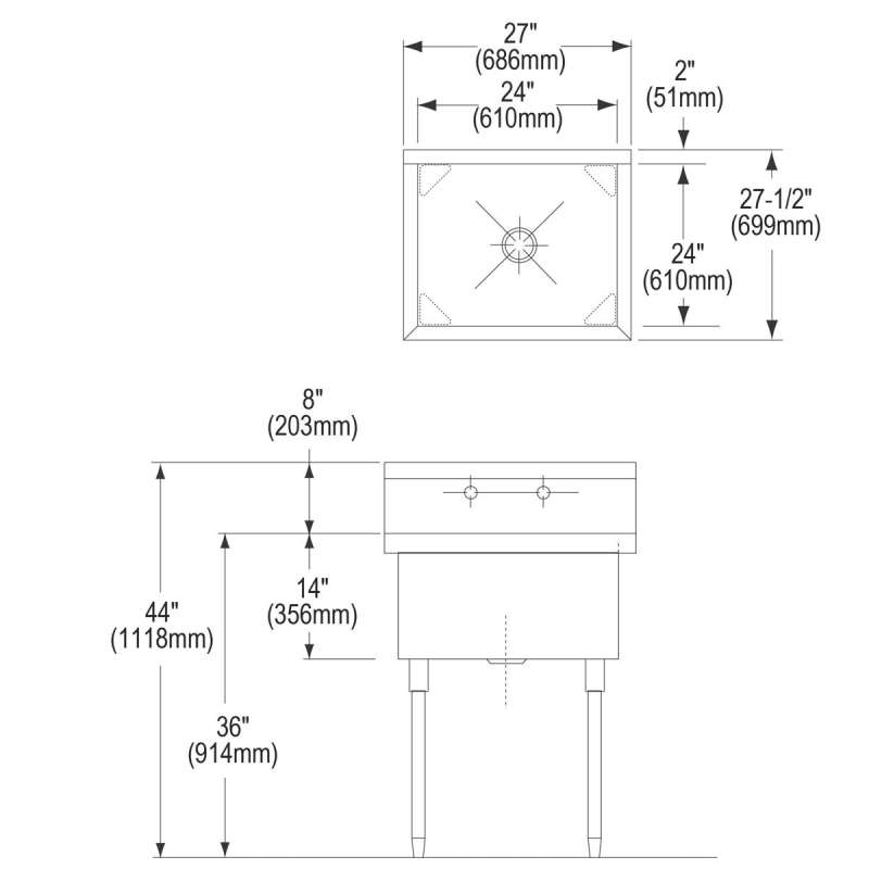 Weldbilt Stainless Steel 27" X 27-1/2" X 14" Floor Mount Single Compartment 1-Hole Scullery Sink, WNSF81241