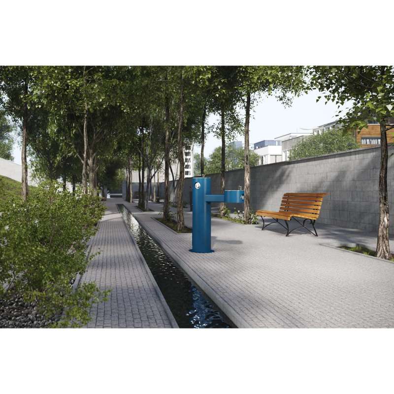 Outdoor tubular wall-mount fountain ideal for parks and recreational areas. Powder-coated exterior over a corrosion-resistant, 300 Series stainless steel base material to provide protection from the elements.