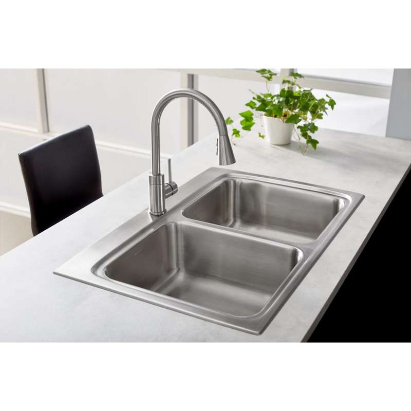 - PULL-DOWN SPRAY HEAD: Provides extra reach for additional cleaning and rinsing coverage