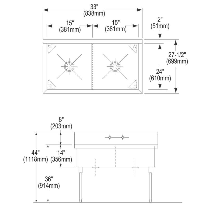 - Sink polished to a uniform lustrous satin finish