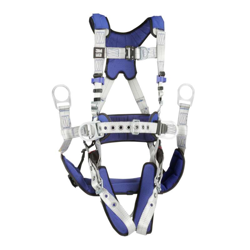The 3M™ DBI-SALA® ExoFit™ X100 is designed with high-quality components that have been developed to enhance the harnesses safety and comfort while working at height on your job site. The X100 comfort harness is built with 6,000lb polyester webbing, nylon/polyester hybrid comfort padding and robust alloy steel hardware. The anti-slide back D-ring plate design helps reduce dorsal D-ring slide and enables a convenient adapter location to connect personal SRLs. Select configurations are also available with exclusive weight distribution systems to help reduce shoulder strain and fatigue.