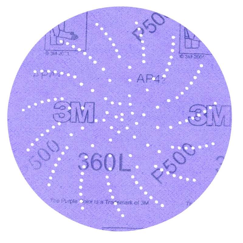 3M Xtract™ Film Disc 360L offers the latest innovation in dust evacuation. Multi-hole patterns evacuate dust better than 5- or 6-hole products—significantly increasing cut-rate and disc life. The new design does not need to align with the disc pad holes, making switching the discs fast, easy, and convenient. The 3M™ Hookit™ attachment system provides excellent backing support and further simplifies disc changes, optimizing disc life, while the film backing provides a consistent finish. The purple aluminum oxide disc comes in a variety of sizes and is available in a range of grades. Sandpaper discs cut better and last longer when dust isn't loading the cutting surface of the abrasives. Reducing dust is easier than ever with 3M™ clean sanding discs. An open coat means the abrasive grains have space between them so that sanding debris collects in the spaces rather than loading the cutting edge of the grains. The load resistant coating allows the disc to continue cutting even when sanding softwoods, paints, and other materials that would, otherwise, clog the disc and hinder sanding ability.