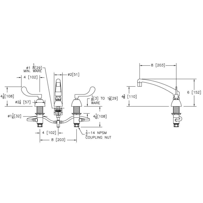 8" Centerset With Concealed Deck Faucet With 8" Arc Tube Spout 4" Wristblade Handles Chrome, LK800AT08T4