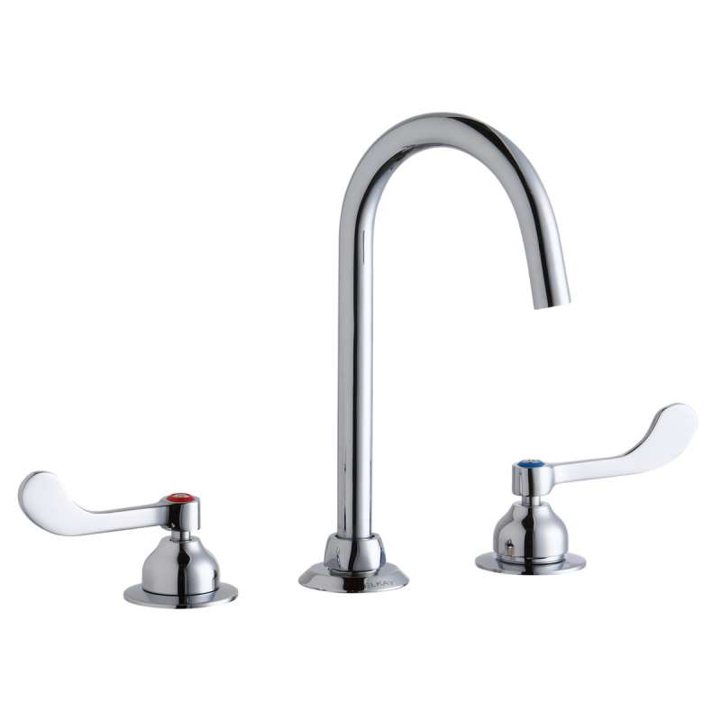8" Centerset With Concealed Deck Laminar Flow Faucet With 5" Gooseneck Spout 4" Wristblade Handles Chrome, LK800LGN05T4