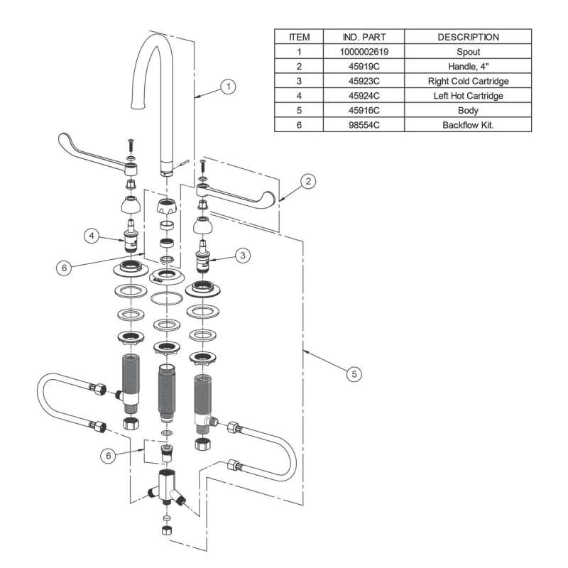 • SPOUT SWING RESTRICTOR PIN: Special pin locks faucet into stationary position for required applications