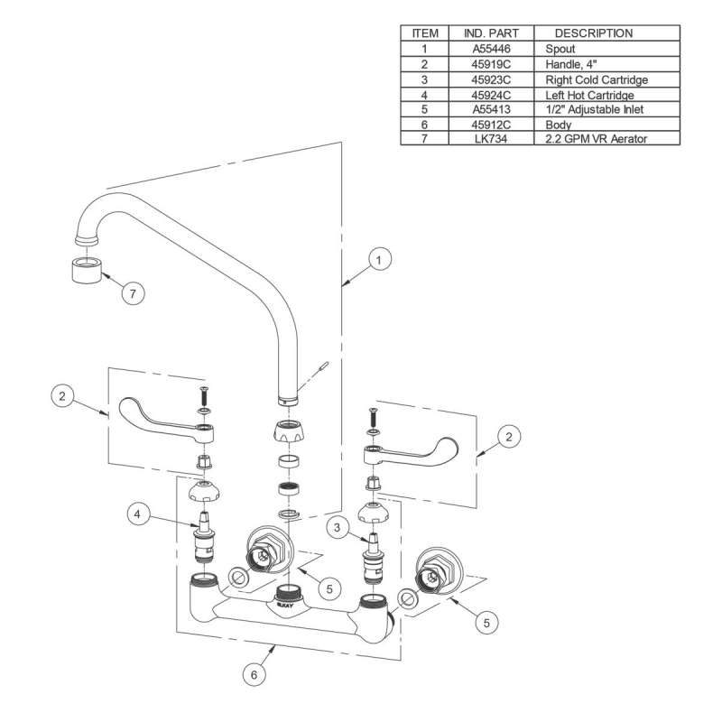 | Features Faucets | 1/2" Adjustable Inlets;Low Flow;Solid Brass Construction;Spout Swing Restriction Pin |