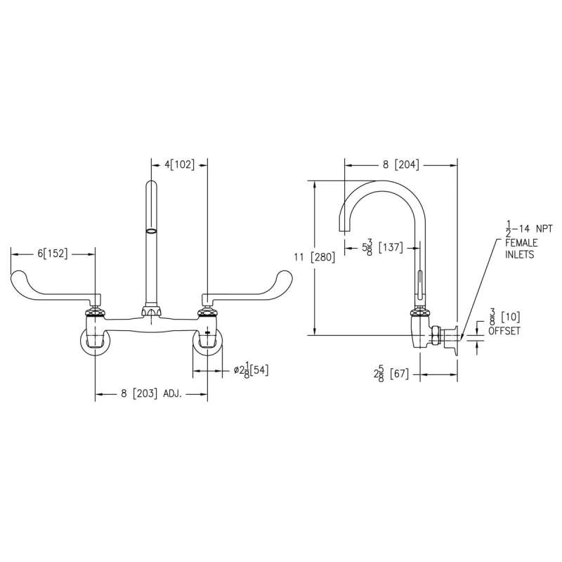 8" Centerset Deck Mount Laminar Flow Faucet With 5" Gooseneck Spout 6In Wristblade Handles 1/2" Offset Inlets+Stop, LK940LGN05T6S