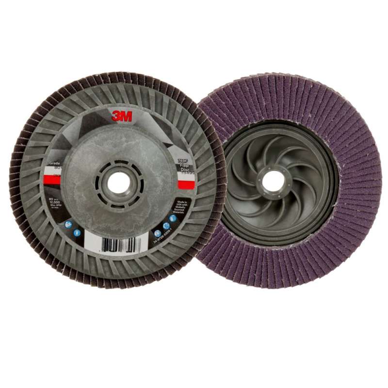 3M™ Flap Disc 769F is a high-performance abrasive disc built for versatility and value. Powered by 3M Precision-Shaped Grain, it lasts longer and cuts faster than conventional aluminum oxide and alumina zirconia flap discs – and it’s priced for affordability and everyday use. This unbeatable combination of performance and value can increase productivity while also lowering your abrasive spend. Value-priced Performance with Built-in Versatility 3M™ Flap Disc 769F is a long-lasting, versatile abrasive disc that includes all the advantages you expect from a flap disc, including conformability and ease of use with a lower risk of gouging. Featuring 3M Precision-Shaped Grain and a durable polyester backing, 3M™ Flap Disc 769F lasts long and holds up strong to high-pressure applications like beveling, weld grinding and edge deburring. Plus, it leaves a finish that makes it a great choice for applications like blending and surface prep. Powered by 3M Precision-Shaped Grain The 3M™ Flap Disc 769F features a blend of 3M Precision-Shaped Grain – a proprietary 3M grain design that continually fractures into sharp points that slice cleanly through metal, unlike traditional abrasives which tend to plow through the substrate. This fracturing helps 3M™ Flap Disc 769F last long and maintain a high cut-rate over the life of the disc. Applications Weld grinding Beveling Edge deburring Blending Finishing Surface preparation Scale removal Weld spatter removal Tech Tip:In many cases, 3M™ Flap Disc 769F will allow you to grind and finish in one step, without changing abrasives. This is because, under normal conditions, 769F will generate a finish that is one grade finer than a fiber disc of the same grade. While a fiber disc will cut faster, this flap disc can eliminate steps and disc change-outs to help save you time.