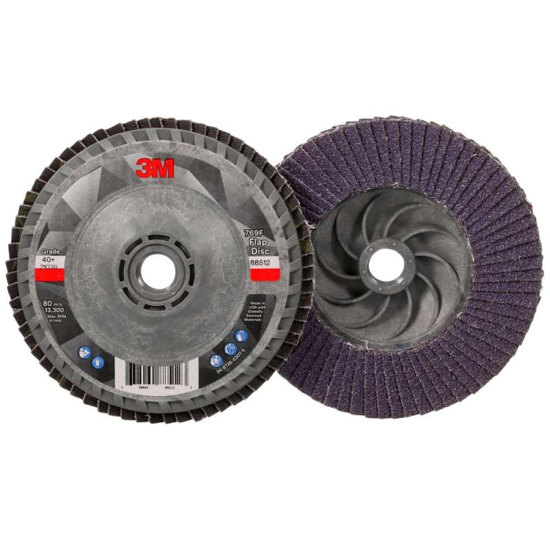 3M™ Flap Disc 769F is a high-performance abrasive disc built for versatility and value. Powered by 3M Precision-Shaped Grain, it lasts longer and cuts faster than conventional aluminum oxide and alumina zirconia flap discs – and it’s priced for affordability and everyday use. This unbeatable combination of performance and value can increase productivity while also lowering your abrasive spend. Value-priced Performance with Built-in Versatility 3M™ Flap Disc 769F is a long-lasting, versatile abrasive disc that includes all the advantages you expect from a flap disc, including conformability and ease of use with a lower risk of gouging. Featuring 3M Precision-Shaped Grain and a durable polyester backing, 3M™ Flap Disc 769F lasts long and holds up strong to high-pressure applications like beveling, weld grinding and edge deburring. Plus, it leaves a finish that makes it a great choice for applications like blending and surface prep. Powered by 3M Precision-Shaped Grain The 3M™ Flap Disc 769F features a blend of 3M Precision-Shaped Grain – a proprietary 3M grain design that continually fractures into sharp points that slice cleanly through metal, unlike traditional abrasives which tend to plow through the substrate. This fracturing helps 3M™ Flap Disc 769F last long and maintain a high cut-rate over the life of the disc. Applications Weld grinding Beveling Edge deburring Blending Finishing Surface preparation Scale removal Weld spatter removal Tech Tip:In many cases, 3M™ Flap Disc 769F will allow you to grind and finish in one step, without changing abrasives. This is because, under normal conditions, 769F will generate a finish that is one grade finer than a fiber disc of the same grade. While a fiber disc will cut faster, this flap disc can eliminate steps and disc change-outs to help save you time.