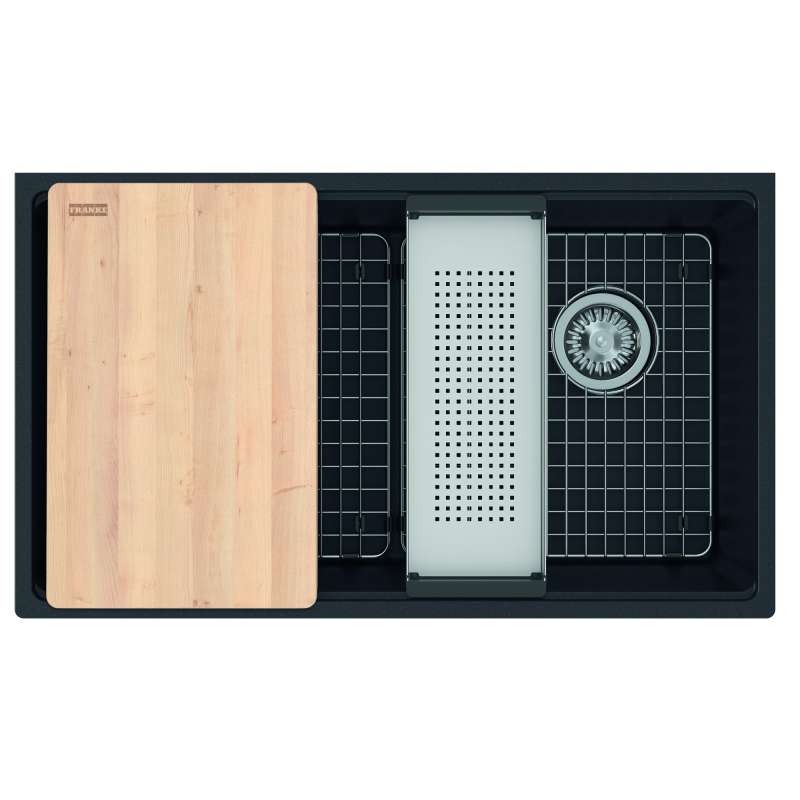 • Franke Maris Undermount 33-In X 19.31-In Fragranite Single Bowl Workcenter Kitchen Sink In Matte Black Matte Black