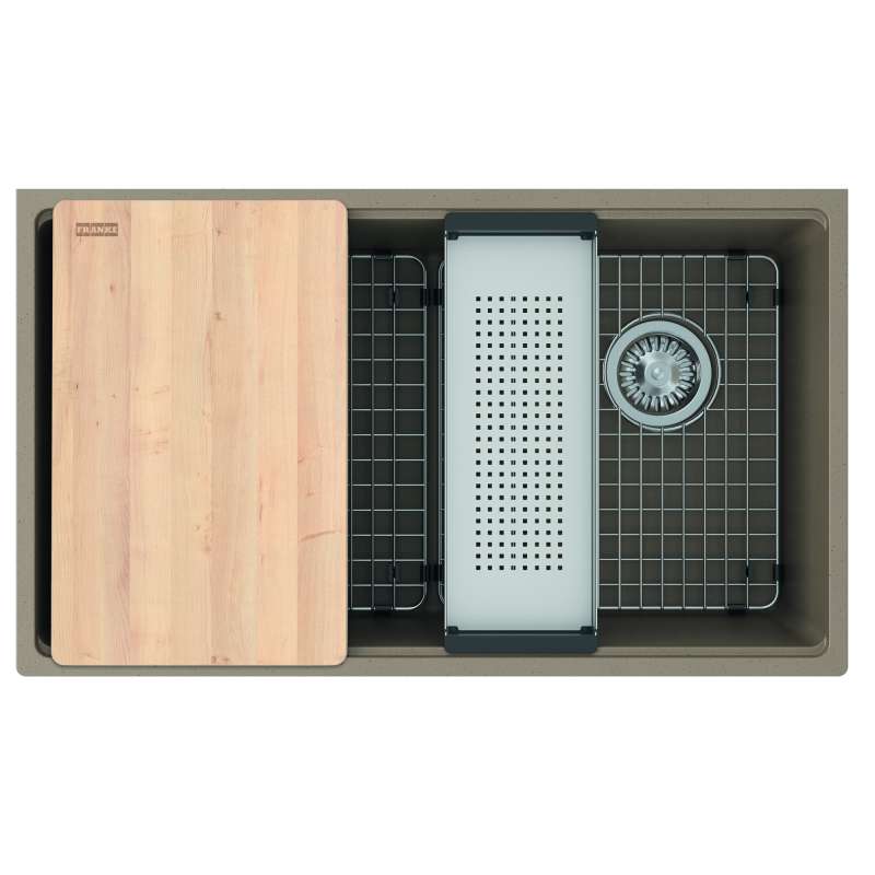 • Franke Maris Undermount 33-In X 19.31-In Fragranite Single Bowl Workcenter Kitchen Sink In Oyster Oyster