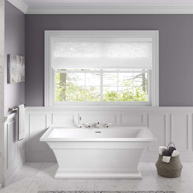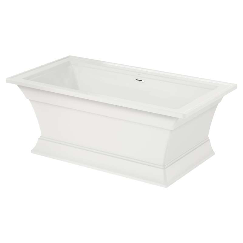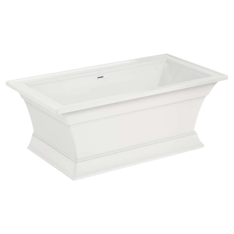 The Town Square S Freestanding Tub by American Standard is the perfect tub for creating an oasis in your home. Featuring an elegant and versatile design that suits any décor style, this architecturally-inspired tub exemplifies stately square shapes and beautiful detailing reminiscent of crown molding. A straight flat back wall of the tub allows for the option of flush-to-the-wall installation. A generous 17-inch depth makes for a luxurious deep soaking tub, and the generously sized ledges provide ample space for a deck-mounted tub filler and all your bathing accessories and essentials. This fiberglass reinforced acrylic bathtub is durable, long-lasting, and has an easy-to-clean high-gloss surface.