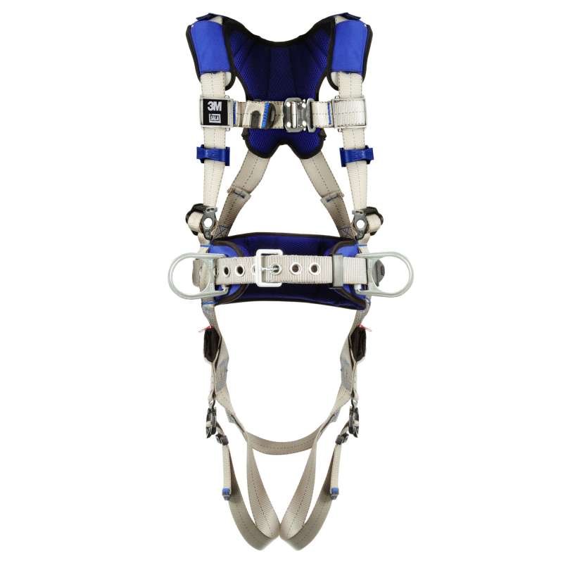 The 3M™ DBI-SALA® ExoFit™ X100 is designed with high-quality components that have been developed to enhance the harnesses safety and comfort while working at height on your job site. The X100 comfort harness is built with 6,000lb polyester webbing, nylon/polyester hybrid comfort padding and robust alloy steel hardware. The anti-slide back D-ring plate design helps reduce dorsal D-ring slide and enables a convenient adapter location to connect personal SRLs. Select configurations are also available with exclusive weight distribution systems to help reduce shoulder strain and fatigue.