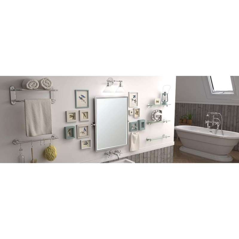 - Kit includes 24-in towel bar, towel ring, toilet paper holder, robe hook