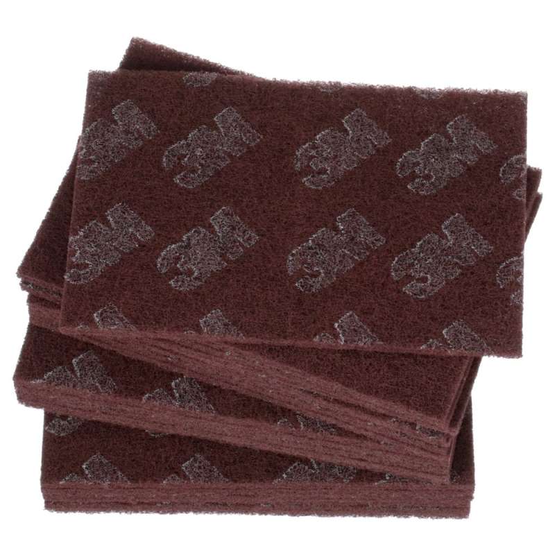 Scotch-Brite™ Hand Pads deliver a fast, consistent scuff for everyday surface preparation. The Scotch-Brite™ Production Hand Pad 8447 is ideal for cleaning parts and scuffing prior to staining and painting. The Scotch-Brite™ Production Hand Pad 8447 is designed with precision web and aluminum oxide mineral to offer our most uniform finish. It's an excellent choice for projects that require pre-paint scuffing, finishing, contour finishing, blending and cleaning. This Hand Pad provides an aggressive cut and a clean finish, but unlike steel wool, it works without the rusting or splintering. The hand pad conforms to irregular surface areas and gets into corners without sacrificing performance. Its versatility means it may be used in a way that's best suited to operator needs. Use this Production Hand Pad by hand, with a hand pad block or an in-line sander. Recommended applications include scuffing, cleaning, blending and surface preparation.