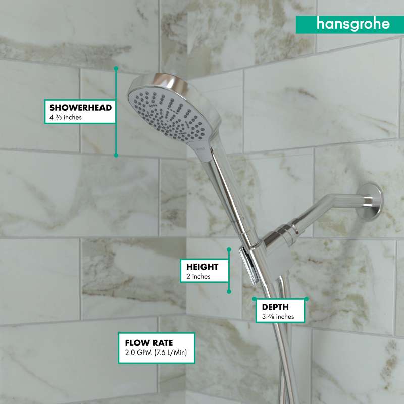 • EASY INSTALLATION: hansgrohe handshowers are easy to install, simply take your old showerhead or handshower off and replace it with your new one. If replacing a showerhead, a hose and showerarm mount are required.