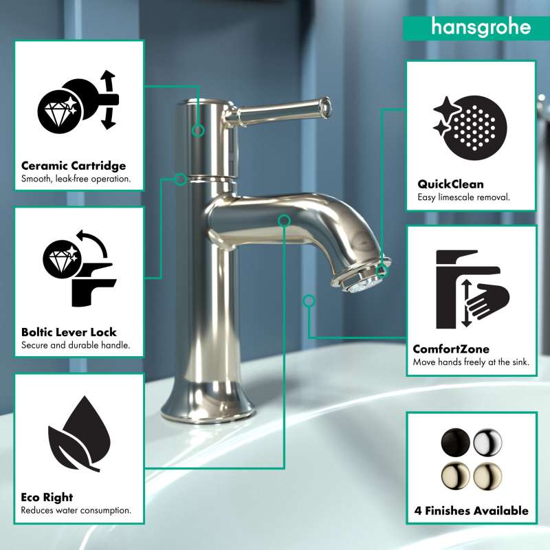 Design With a range of models and styles, paired with the quality and design you expect from hansgrohe, dream bathrooms become a reality. Bath faucets by hansgrohe exude beautiful design with superior performance and durability. Pick your desired faucet, then browse the entire product suite for complementary accessories. German engineering ensures a lifetime of consistent and dependable operation. Maintenance Products that function perfectly are essential. To ensure that they do, every hansgrohe product 100% air tested in production. hansgrohe faucets feature a silicone aerator that optimizes water flow performance, resists mineral deposit build-up, and is designed to be easily wiped clean. Installation Can be installed in existing 1 or 3 hole counter configurations. Standard 3/8-inch pipe connection hoses included (attached). Baseplate sold separately. Please comply with all local, state, and federal plumbing codes and regulations. Installation instruction link below. Customer Support customerservice@hansgrohe.com | 1 (800) 334-0455 | Limited Lifetime Warranty | Installation / User Guide / Warranty PDF links below