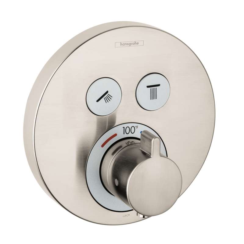 Pure shower enjoyment at the touch of a button - this is ShowerSelect. Whether you want the water to flow precisely or stop altogether, or whether you want to easily switch from the hand to the overhead shower: The Select button permits highly comfortable water control at the touch of a button. It offers stylish, concealed thermostats and faucets for every setting, taste and shower style: The design is available in an angular or a rounded design language, in chrome and with glass finish in white or black. hansgrohe ShowerSelect units can easily be installed with the iBox Universal. The advanced hansgrohe technology simply vanishes behind the wall - the focus is on the Elegant design, and there is more room for shower comfort.