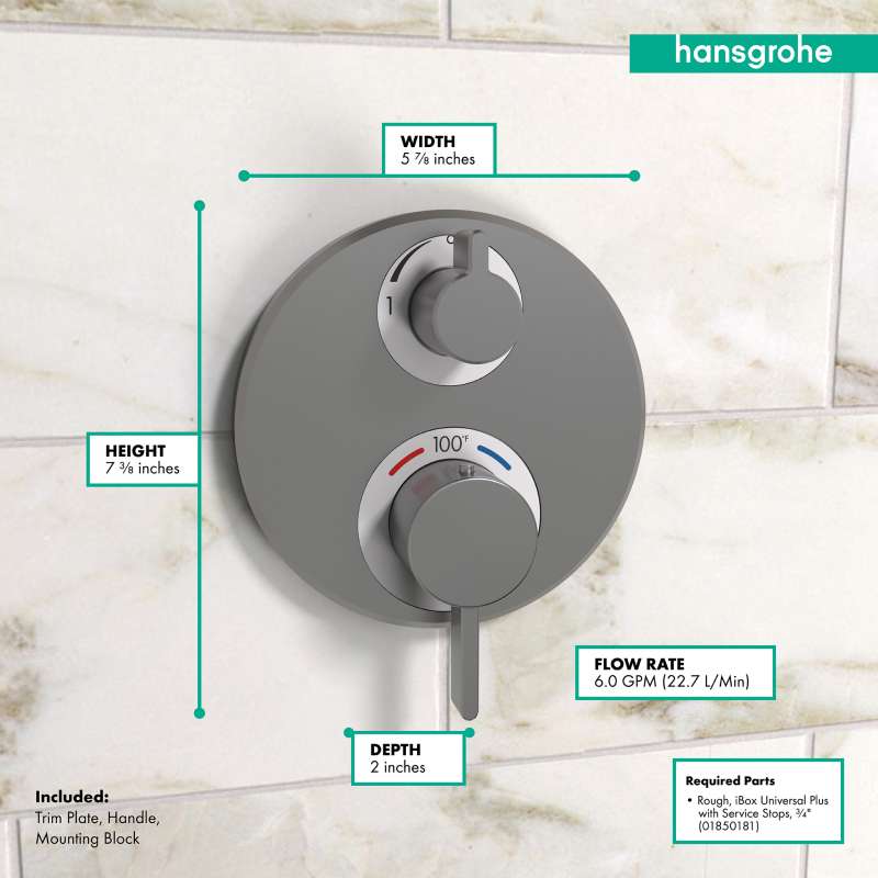 - Installation notes: Hansgrohe recommends a licensed plumber install this product