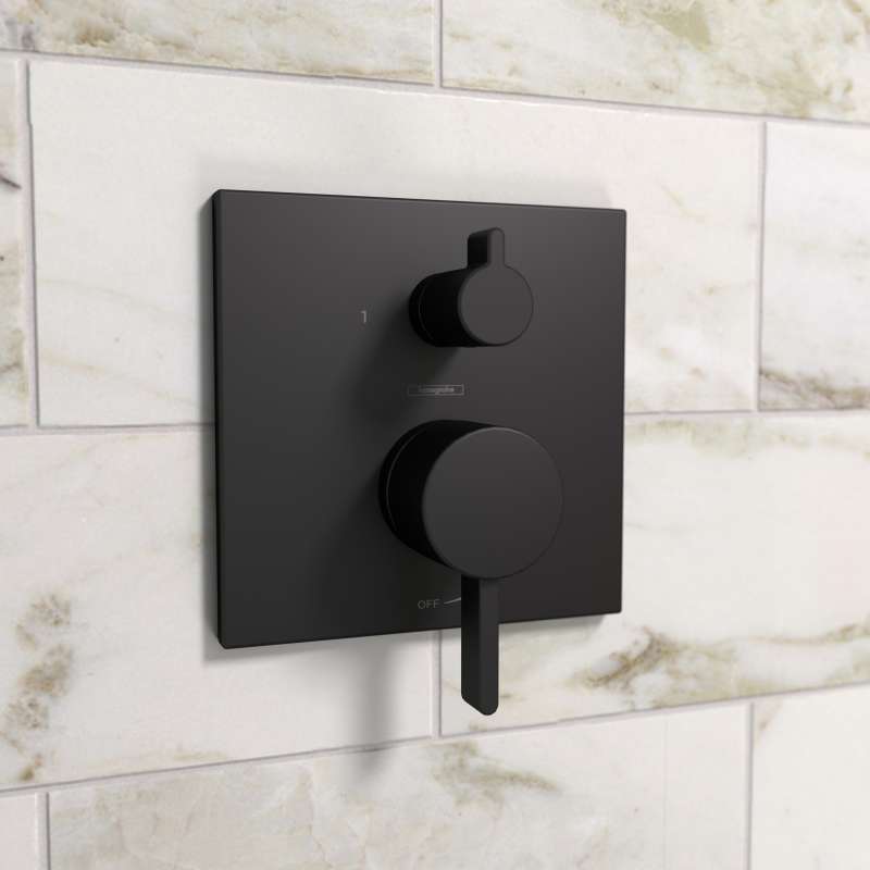 With Ecostat shower trims, hansgrohe offers you sophisticated technology for concealed Installation. Ecostat concealed shower trims are ideal for new buildings or if an iBox universal plus rough is already installed in your wall. The advantage of the concealed version is that the technology disappears invisibly into the wall, saving space. Ecostat trims impress with their Elegant design, safety, sophisticated functionality, high value and proven hansgrohe quality. The choice in style is yours: hansgrohe Ecostat is available in three design variants : Ecostat E with rounded corners, Ecostat S in a round shape and Ecostat in a square design. The flat concealed thermostats are simply mounted on the iBox universal plus rough . Concealed Installation is interesting for anyone planning or building a new bathroom. And for purists who like their bathroom to be clear and tidy.