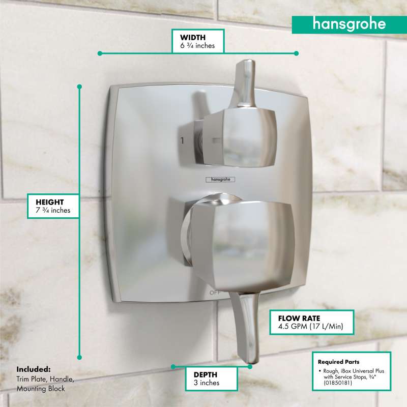 - Installation notes: Hansgrohe recommends a licensed plumber install this product