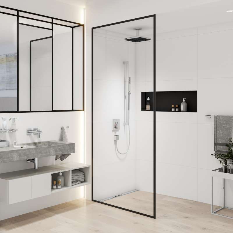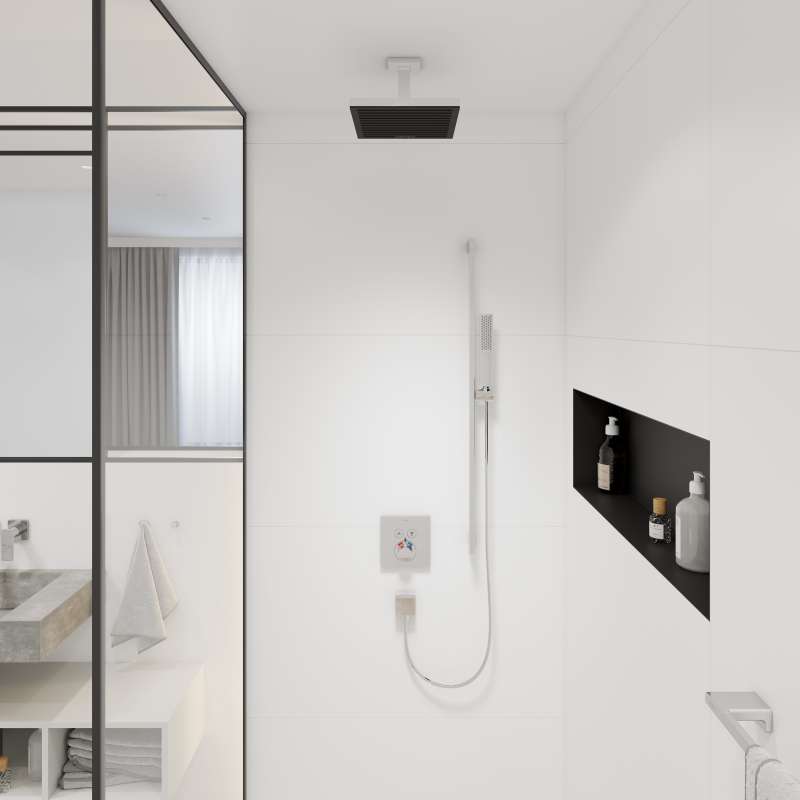 - Perfect companion for the overhead showers of the Pulsify collection with slim design and an angular escutcheon