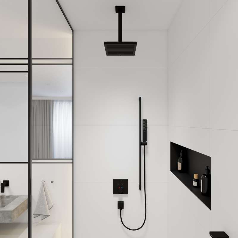 - Perfect companion for the overhead showers of the Pulsify collection with slim design and an angular escutcheon