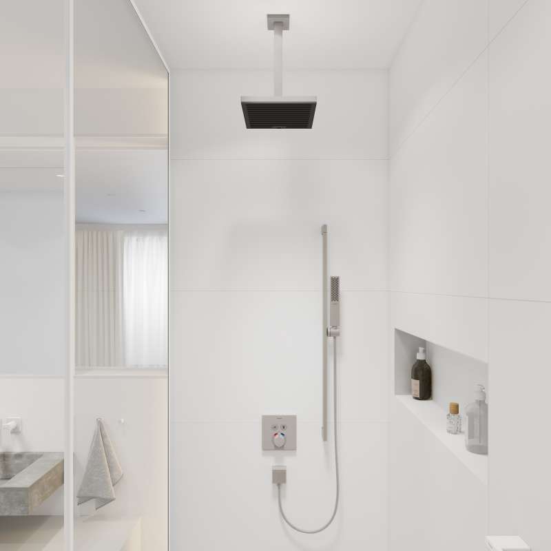 - Perfect companion for the overhead showers of the Pulsify collection with slim design and an angular escutcheon